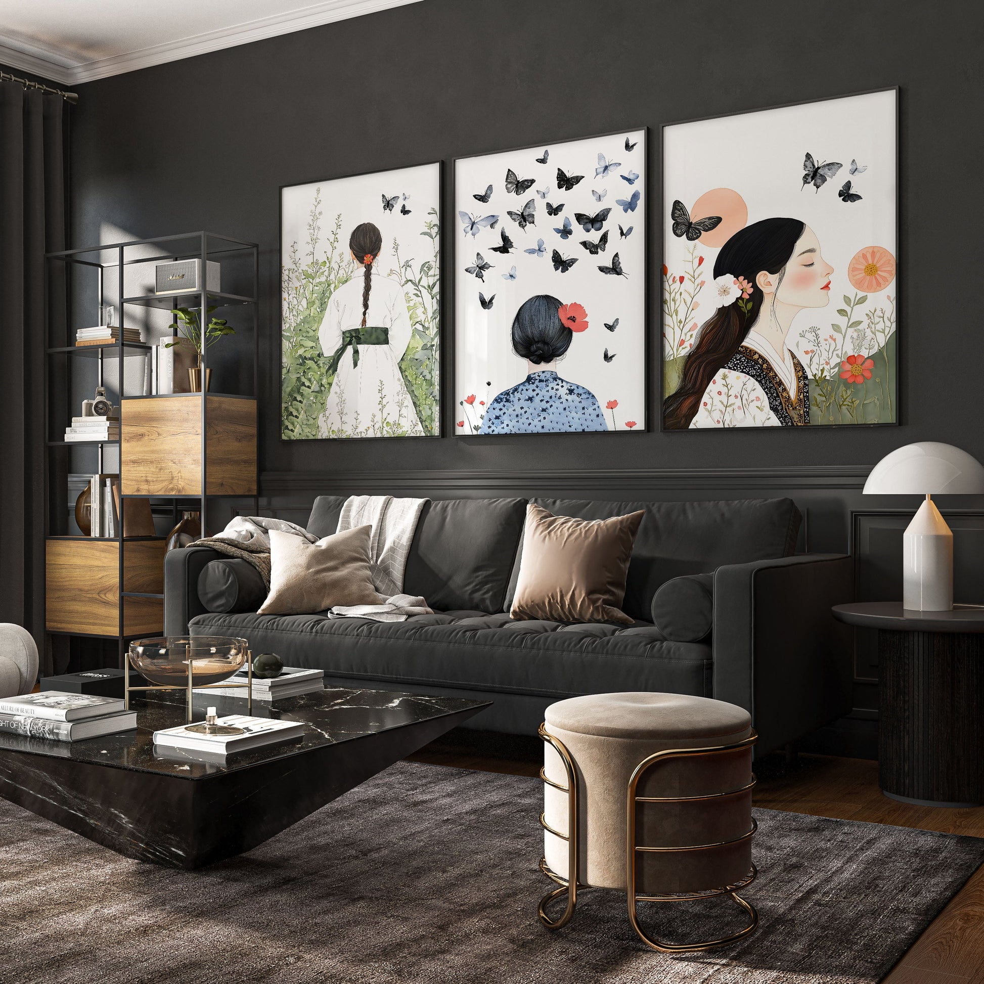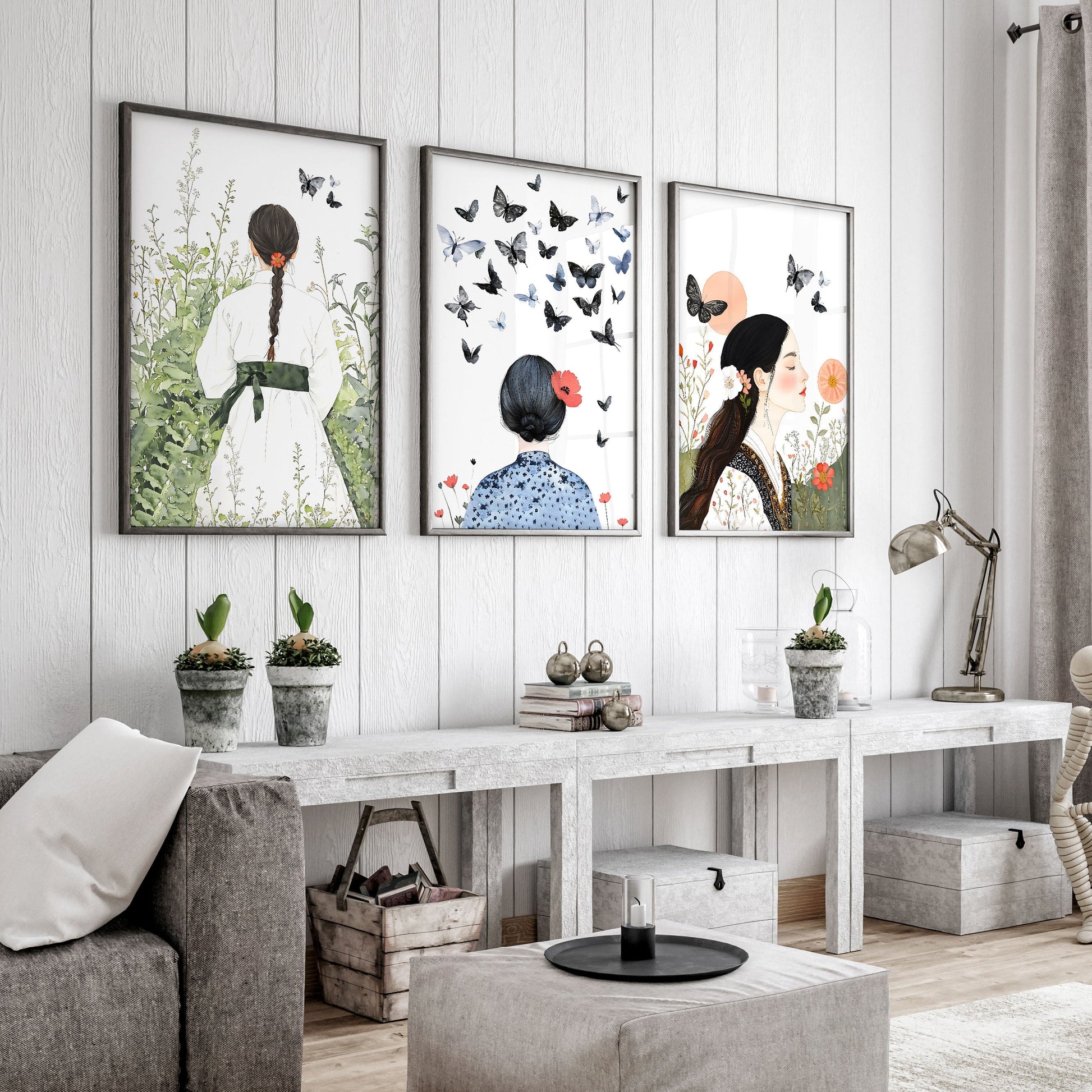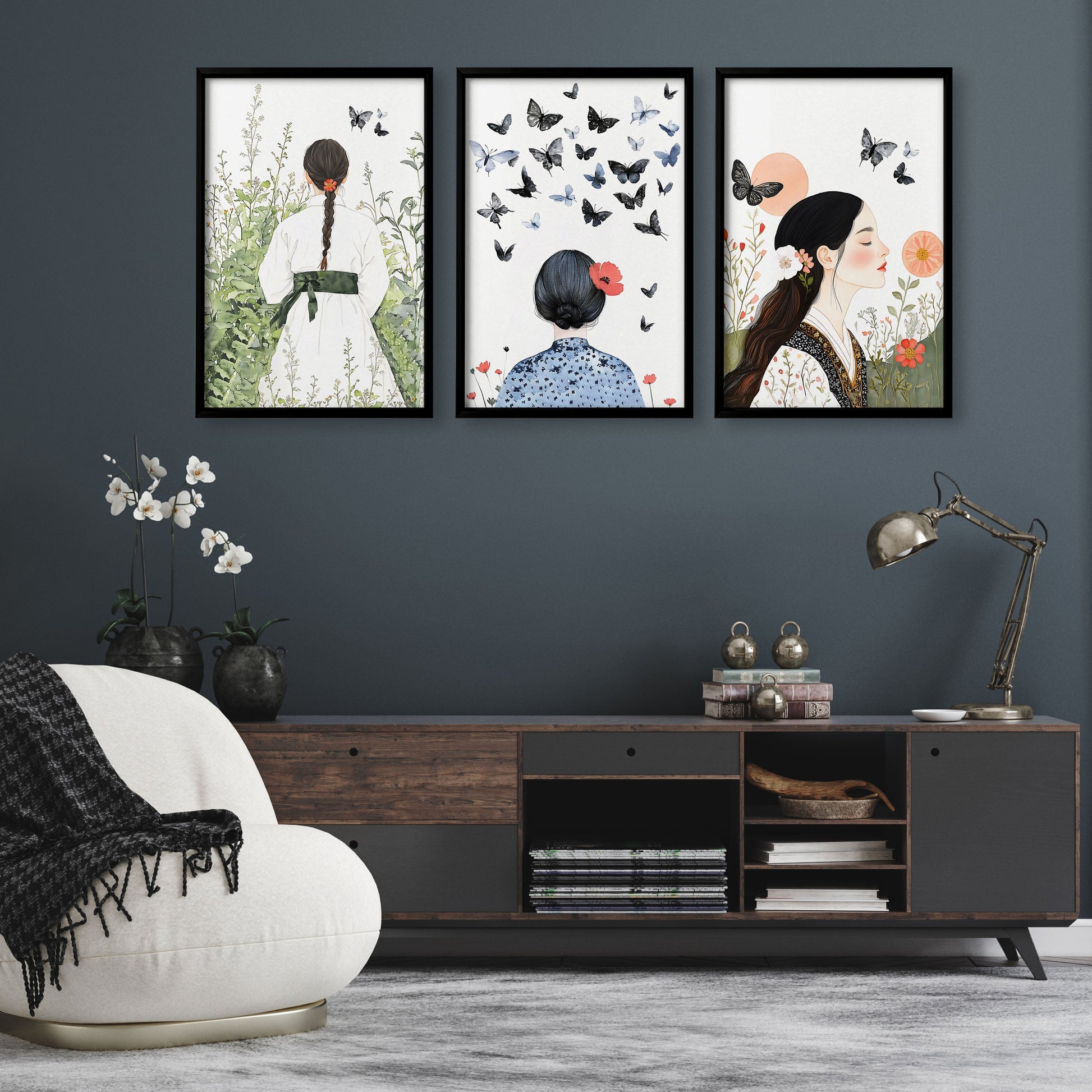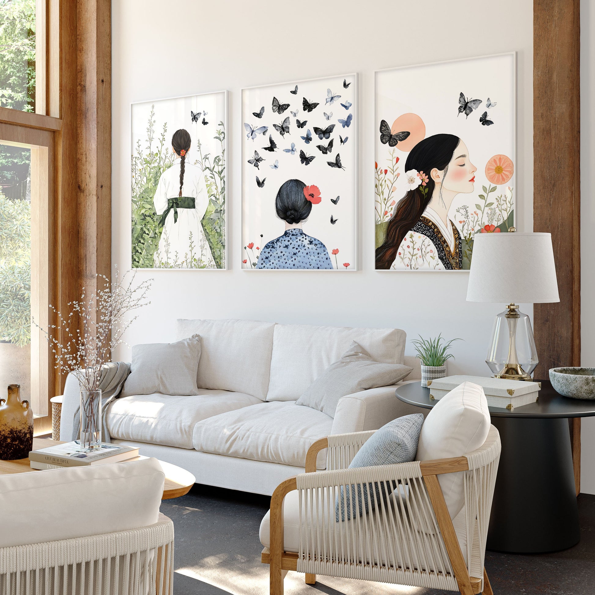 You will receive a Set of 3 Boho Women Wall Art Prints for your living room art.
